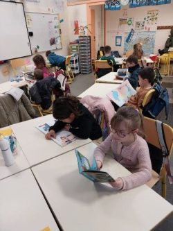 Dans le cadre des « Nuits de la lecture » édition 2026, organisée par le Centre national du livre sur proposition du ministère de la Culture, les enseignants de notre école avaient invité parents et enfants à partager un moment de lecture au cours d’un goûter.
