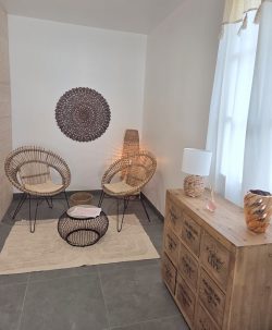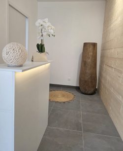 Dès l’entrée, le ton est donné : une atmosphère douce, chaleureuse, presque hors du temps… bois naturel, matières apaisantes, lumière tamisée… tout invite à ralentir.