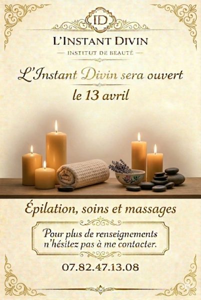 L’Instant Divin, nouvel institut de beauté, est ouvert depuis le 13 avril dans notre village.
